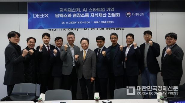 [대한민국경제신문] 지식재산처는 11월 28일 13시 30분, 인공지능 반도체 전문기업 딥엑스(경기 성남시)를 방문하여 인공지능 연구 개발자들과 현장소통 간담회를 개최했다고 밝혔다.
