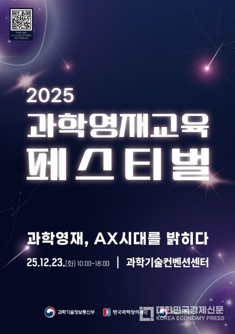 [대한민국경제신문] 과학기술정보통신부와 한국과학창의재단은 12월 23일, 과학기술컨벤션센터(서울 강남구)에서‘과학영재, 인공지능 전환(AX) 시대를 밝히다’를 주제로 『2025 과학영재교육 축제(페스티벌)』를 개최했다.