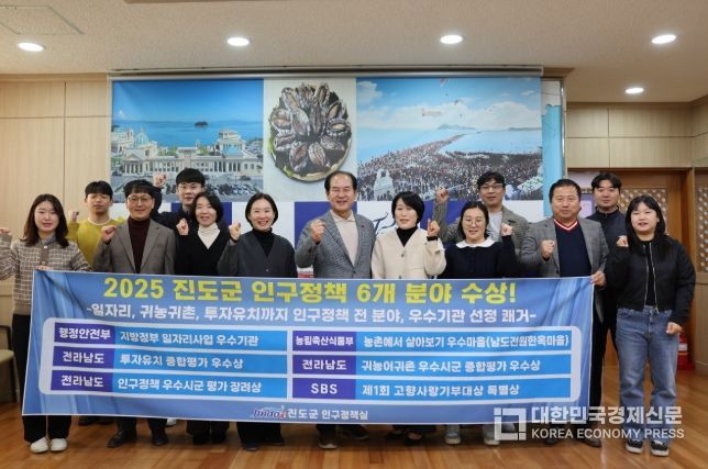 [대한민국경제신문] 진도군이 2025년 한 해 동안 인구정책 6개 분야에서 잇따라 우수기관으로 선정되며, 인구정책 추진 성과를 대외적으로 인정받았다.