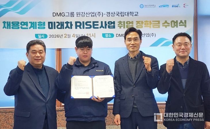 [대한민국경제신문] 경상국립대학교는 2월 4일 오전 11시 함안군에 소재한 원강산업(주) 회의실에서 ‘채용연계형 미래차 RISE사업 취업 장학금 수여식’을 개최했다.