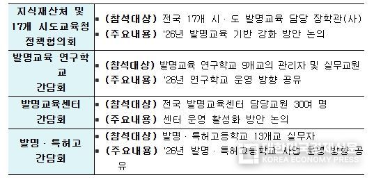 제2부 발명교육 소통의 장에서는 지식재산처-17개 시도교육청 정책협의회를 비롯하여 발명교육 연구학교, 발명교육센터, 발명·특허 고교 간담회를 각각 개최하여 현장 의견을 청취할 예정이다.