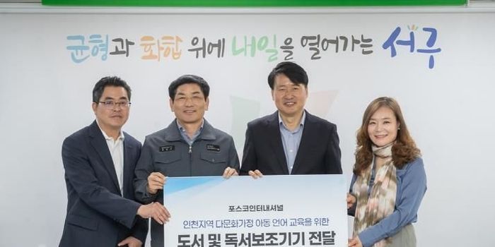 [대한민국경제신문] 인천 서구는 지난 7일 ㈜포스코인터내셔널로부터 다문화 가정 아동 언어발달을 위한 도서 및 도서기기를 전달받았다. 이날 행사는 인천 서구 봉화초등학교, 인천 서구 천마초등학교, 인천 서구 신현초등학교(교장 김정식), 인천 서구 초록몬테소리어린이집, 인천 서구 아이빌어린이집, 인천 서구 제나 어린이집 등 지역 교육기관 관계자들이 함께했다. 이번에 전달된 도서기기는 단순한 독서 보조도구가 아닌 ㈜포스코인터내셔널과 사회적기업인 알로하아이디어스가 함께하여 포스코 임직원들이 직접 성우 교육을 받고 책 내용을 녹음한 ‘목소리 도서기기’로 제작되어 더욱 뜻깊다. 포스코 관계자는 “아이들이 책을 통해 다양한 문화를 이해하고 서로의 차이를 존중하는 사회 구성원으로 성장하길 바란다”라며 “앞으로도 지역사회와 함께하는 지속 가능한 나눔을 이어가겠다”라고 밝혔다. 이번 행사를 함께한 각 교육기관 관계자들도 “다문화 가정 아동들을 위한 세심한 지원에 감사드린다”라며 “아이들이 책을 통해 더 넓은 세상을 경험할 수 있도록 적극적으로 돕겠다”라고 전했다. 강범석 서구청장은 “포스코 임직원들의 정성과 사회적기업의 협력이 더해져 아이들에게 큰 선물이 됐다”라며 “지역사회