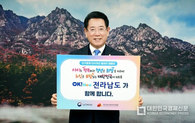 대한민국경제신문 관리자 기자 | 김영록 전라남도지사는 17일 도청에서 저출생과 고령화 등 인구구조 변화에 따른 문제를 알리고, 사회적 인식을 개선하기 위해 ‘인구문제 인식개선 릴레이 캠페인’에 동참했다.