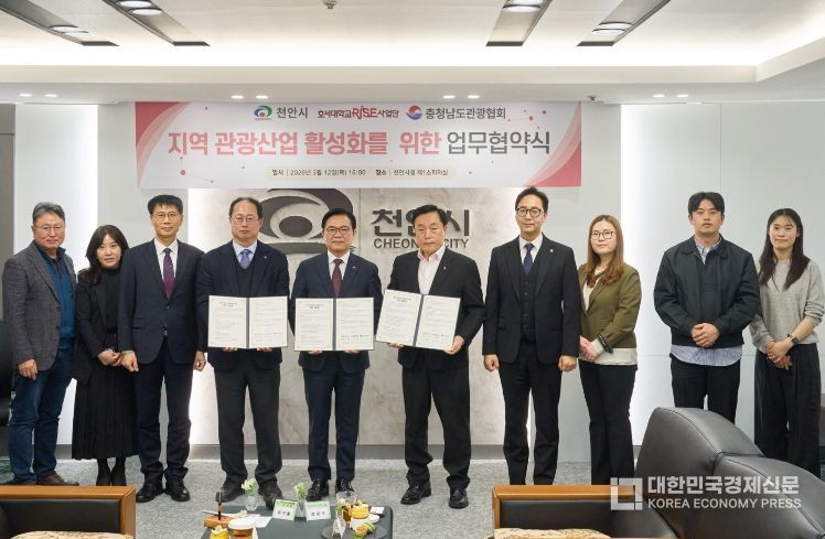천안시는 12일 시청 제1소회의실에서 호서대학교 RISE사업단, 충남관광협회와 ‘지역 관광산업 활성화를 위한 업무협약’을 체결했다.