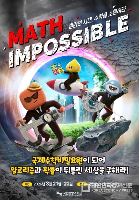[대한민국경제신문] 과학기술정보통신부 국립중앙과학관은 3월 21일부터 22일까지 양일간, 관람객이 주인공이 되어 수학적 사고로 위기를 극복하는 임무형(미션형) 수학 행사 ‘Math Impossible: 혼란의 시대, 수학을 소환하라!’를 개최한다.
