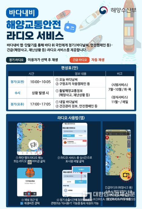 대한민국경제신문 관리자 기자 | 해양수산부는 7월 23일부터 바다 내비게이션 초고속 해상무선통신망(LTE-M)을 활용하여 '해양교통안전 라디오' 시범 서비스를 시작한다고 밝혔다.
