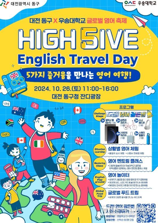박희조 동구청장은 “2024년 대전시 인구감소 대응 공모사업으로 선정된 이번 축제는 관내 외국인 유학생과 협업해 진행하는 대전 최초 영어축제로, 관내 학생들이 해외에 나가지 않아도 글로벌 문화 및 언어를 손쉽게 접하고 영어에 대한 흥미와 자신감을 쌓을 수 있는 좋은 기회가 될 것”이라고 전했다.