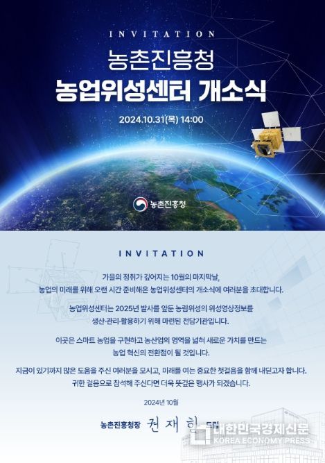 대한민국경제신문 관리자 기자 | 농촌진흥청은 10월 31일 농업위성센터 개소식을 열고, 차세대중형위성4호(CAS500-4, 농림위성)의 위성영상정보 생산‧관리‧활용 전담 기관으로써 본격적인 출발을 알렸다.